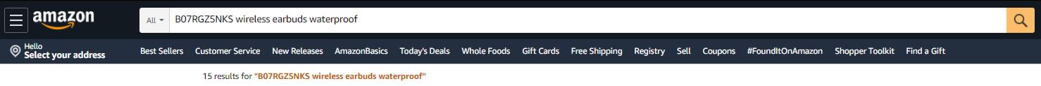 Confirming if you product is indexed or not will take just a few steps. First, you should find the ASIN of the product, for demonstration, we chose a random wireless earbuds product whose ASIN is B07RFZ5NKS.